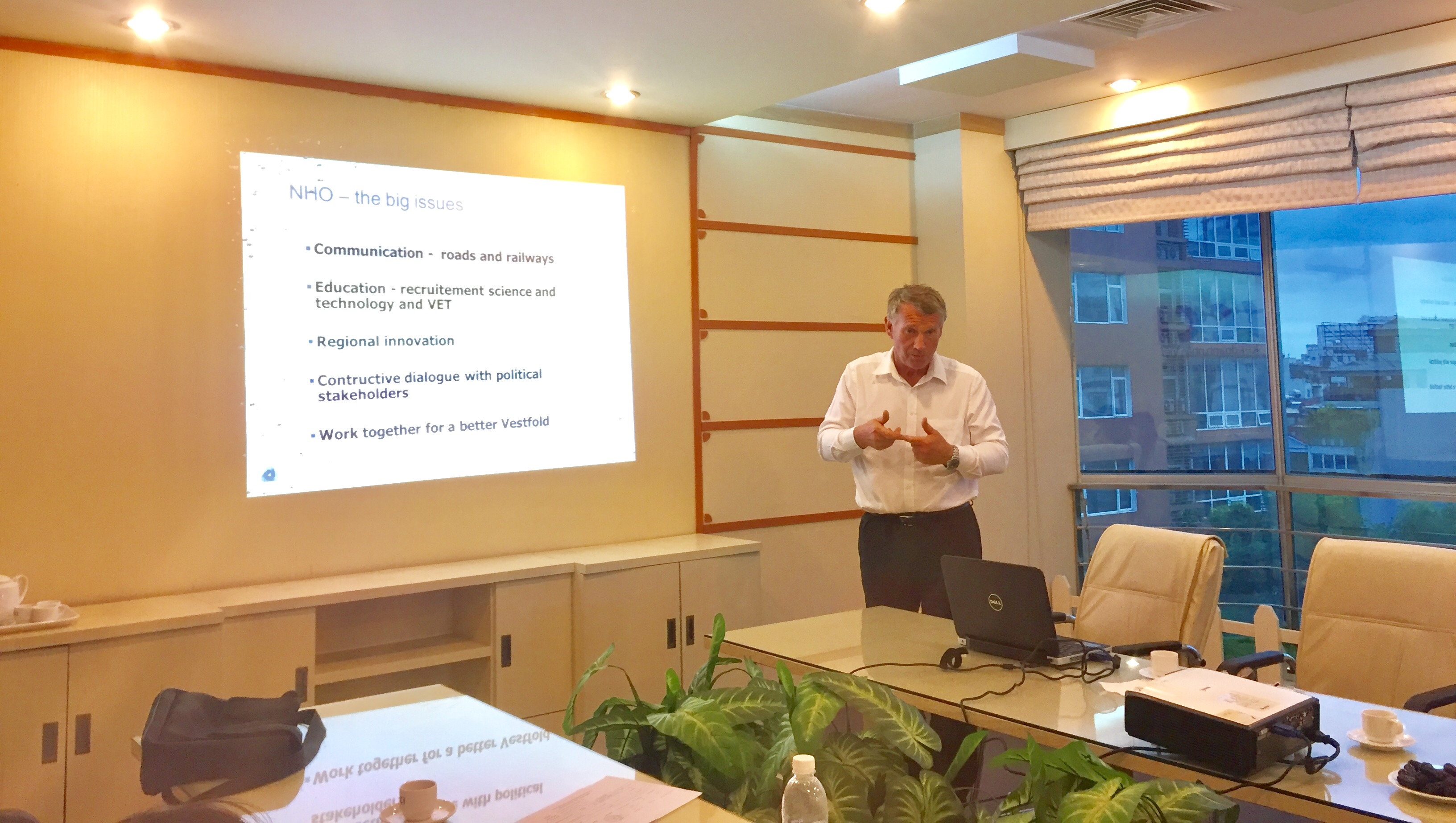 He shared that in Norway, the annual birth rate was 60,000 people, nearly 97% were in high school, some dropped out before graduation. Career orientation at the secondary level is very important, so the Norwegian government has implemented a number of campaigns aimed at parents to allow their children to attend a vocational school instead of dropping out and falling into school. He emphasized that in Norway vocational training has very close cooperation between the Ministry of Education, the Trade Union and NHO. The parties are responsible for directing and implementing Career Education through specific activities such as providing internships, supervising and organizing vocational certification.